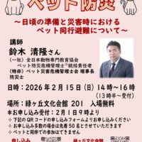 【入場無料】めぐろ防災士会 防災イベント『ペット防災』が2/15(日)に開催