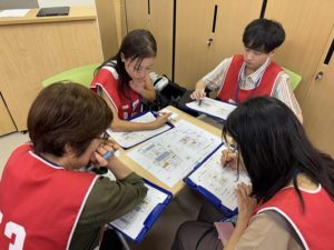 グループワークでは、避難所のゾーニングや物資管理を想定し、役割分担や運営方法を詳細に検討しました。