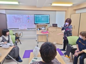実際にわんちゃんも参加してくれましたので、先生が実践されているのを参加者が見学し、ぬいぐるみ等で練習しながら手技を学び、最後は参加者自身が温熱マッサージを体験、日ごろの疲れを癒しほっこりしたところで、初めての温活セミナーは終了となりました。
