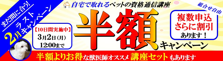 そう信じる私たちSAEが自宅で学べる通信講座を対象に、受講料★半額★や特典付与などのキャンペーンを実施して、大切なペットについての学びをお届けしていきます!