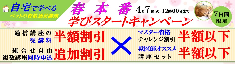 大切なペットについて「知ろう」「学ぼう」とする方のチャレンジを、通信講座を対象に受講料★半額★キャンペーンで応援します。