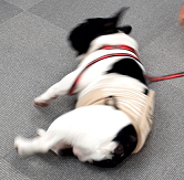 右側のわんちゃん、匍匐前進のつもりが・・・・・