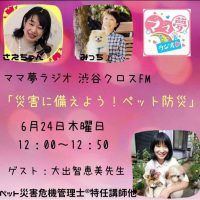 ペット災害危機管理士(R)1級講師 平端弘美先生がパーソナリティを務める、渋谷クロスFM放送の『ママ夢ラジオ』(毎月第4木曜日12:00〜12:50)において、6月24日(木)放送回は「災害に備えよう!ペット防災」をテー …